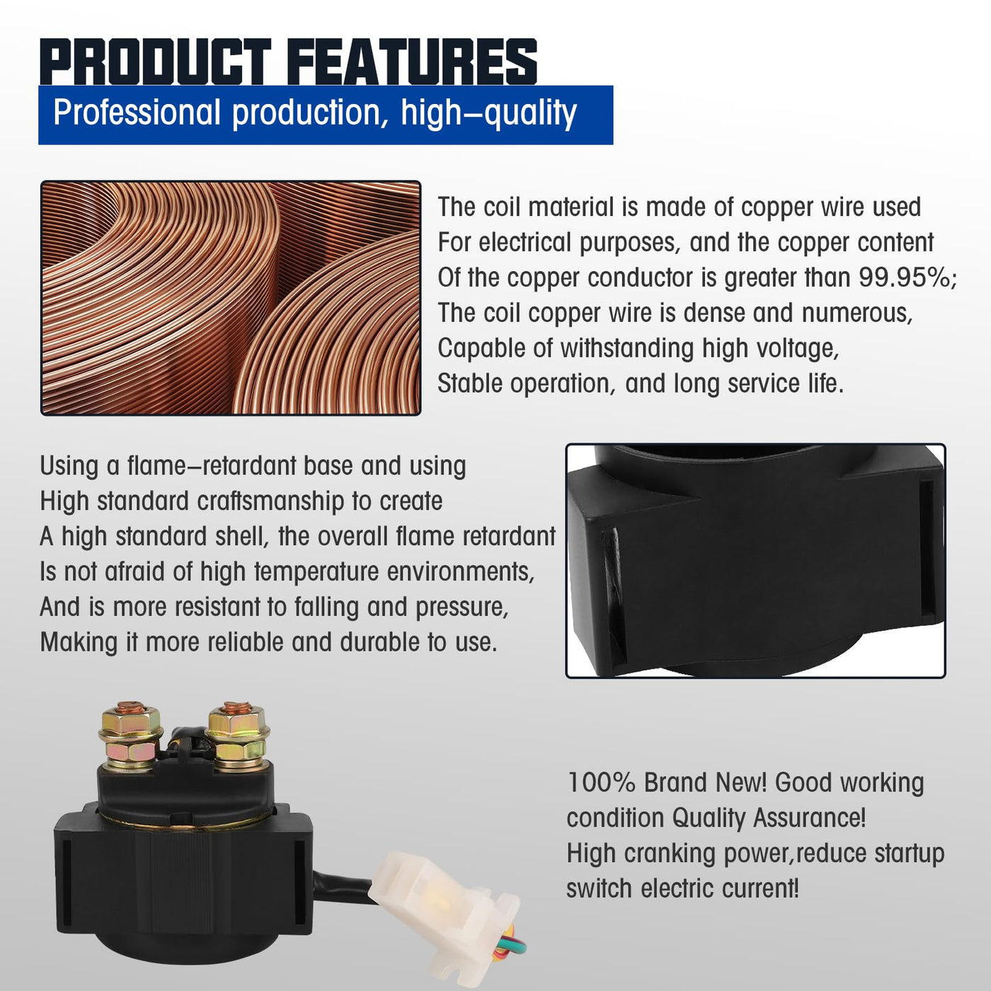 Q: Is this solenoid relay easy to replace if it fails?A: Yes, the solenoid relay is designed for easy replacement. If you experience starting issues, it typically indicates a problem with the solenoid. Simply disconnect the old relay and replace it with the new one, ensuring all connections are secure.