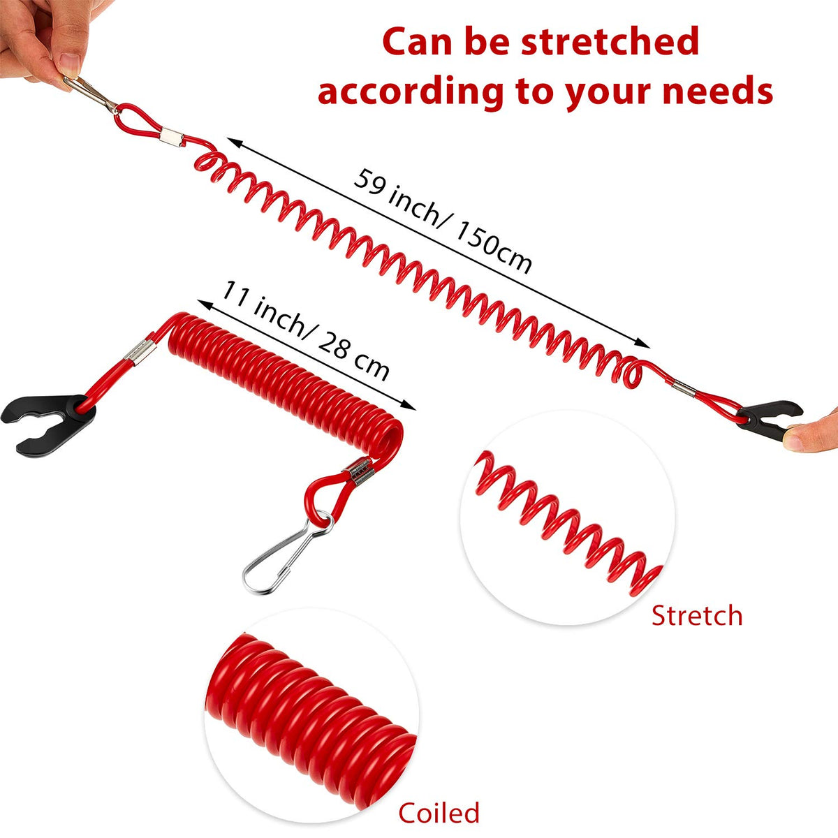Specifications: Material: Quality Plastic Size: 59 Inch In Length When Uncoiled Fit For: Most Brand Outboard Engine Color: Red