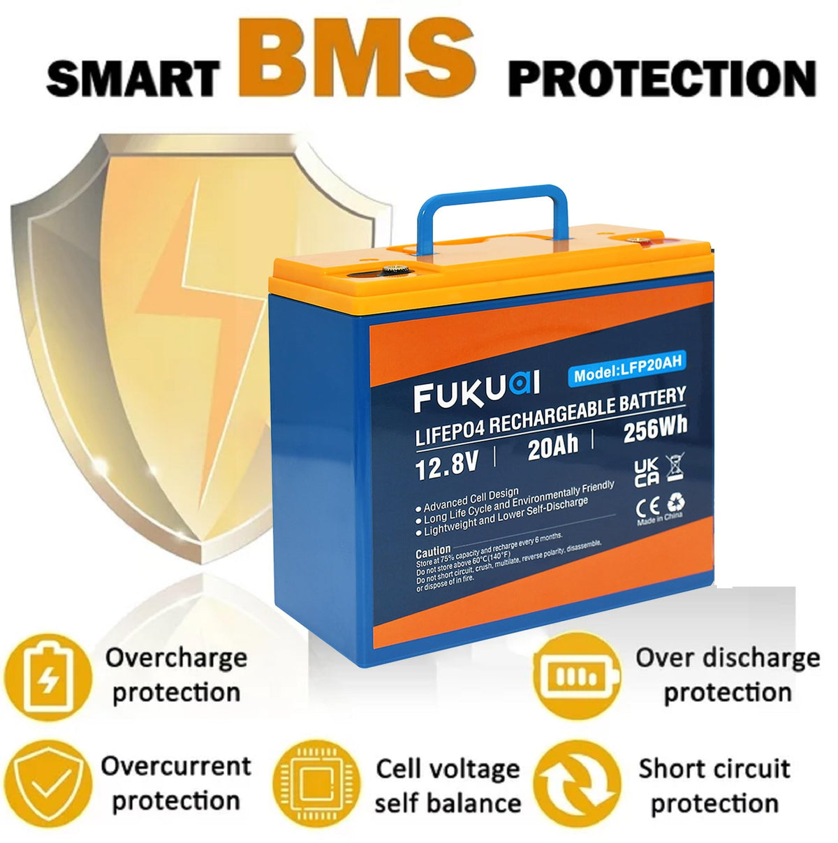 Fukuai 12V 20Ah Lithium Lifepo4 Battery, 2000+ Deep Cycles Lithium Iron Phosphate Battery For Solar System, Marine, E-Scooters A