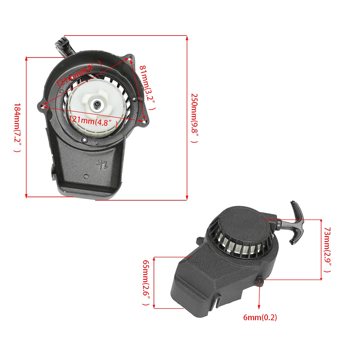 Fvrito Alloy Easy Pull Recoil Start Starter Spark Plug Ignition Coil For 2 Stroke Engine 47Cc 49Cc Coolster Chinese Atv Quad 4 Wheeler Go Kart Pit Dirt Mini Pocket Chopper Bike Motor Gas Scooter Black