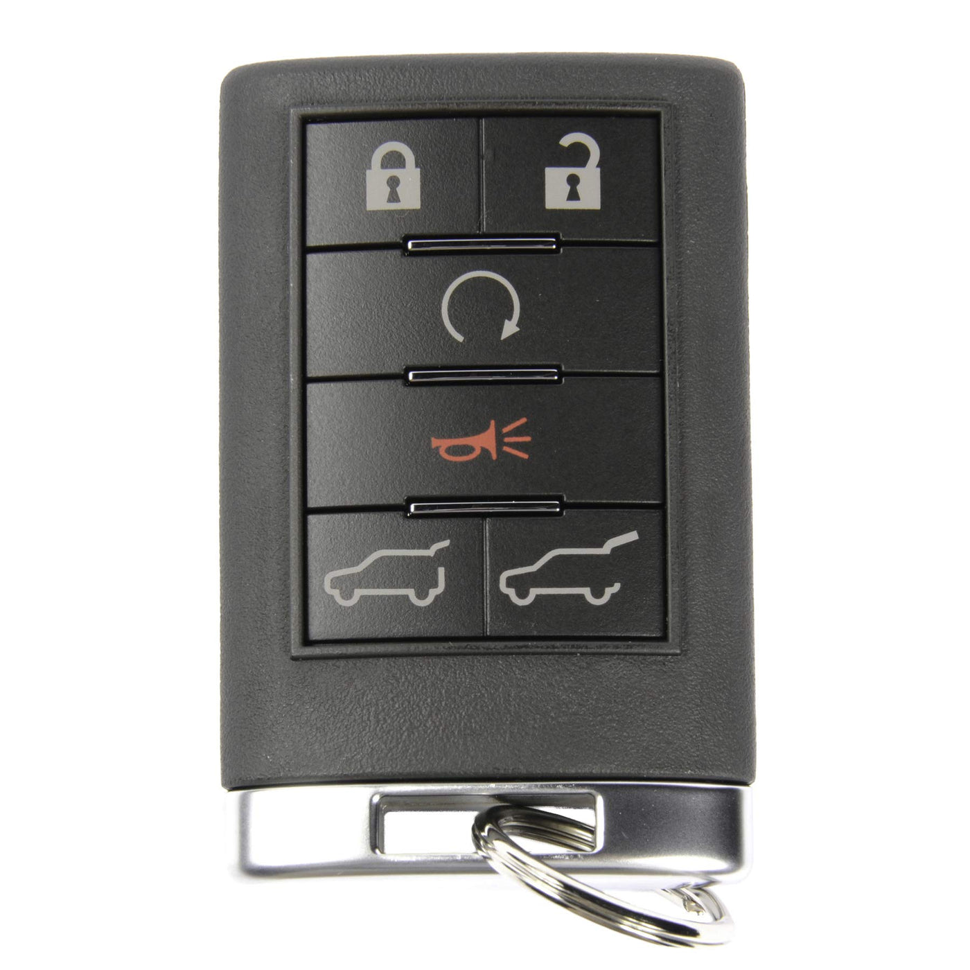 Q: What features does this key fob offer?A: The General Motors 22756466 Key Fob features six buttons for lock, unlock, panic, liftgate, liftglass, and remote start, providing convenience and ease of access to your vehicle.