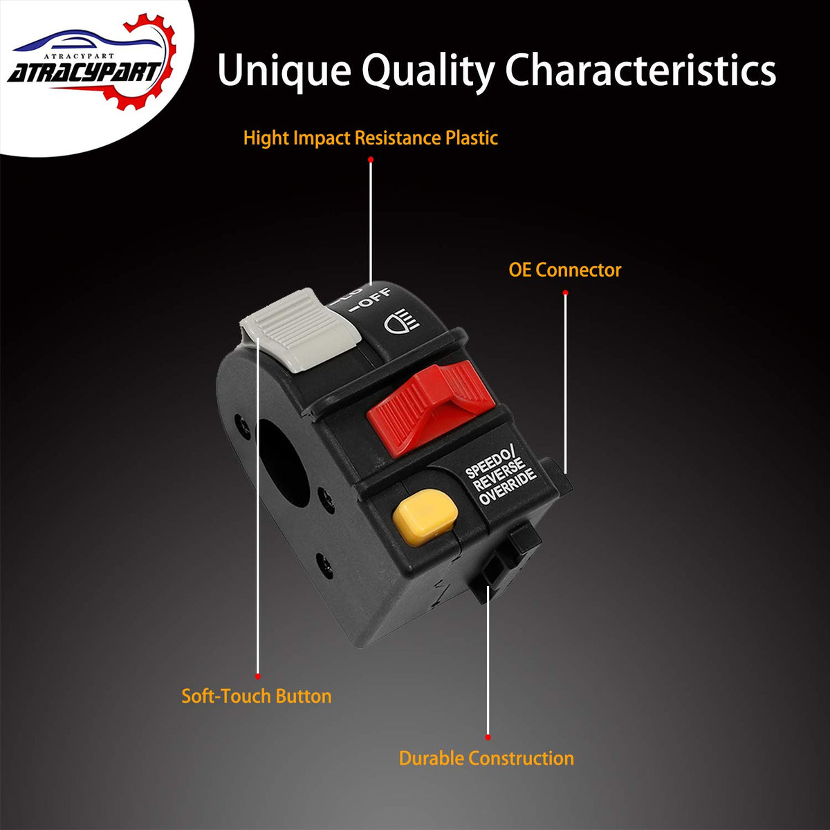 Q: What functions does this switch support?A: This switch controls multiple functions such as high/low beam, horn, turn signals, and engine start/kill, making it a versatile component for your ATV or motorcycle.