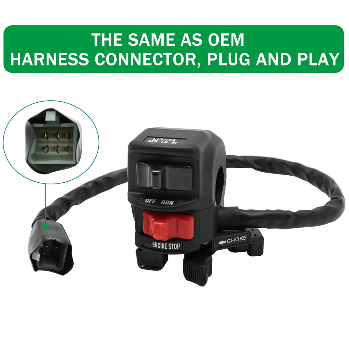 Q: Is the installation of the Handlebar Switch easy?A: Yes, the Handlebar Switch is designed with an OEM harness connector, ensuring a plug-and-play installation. This means it fits perfectly and can be installed easily without any additional modifications.