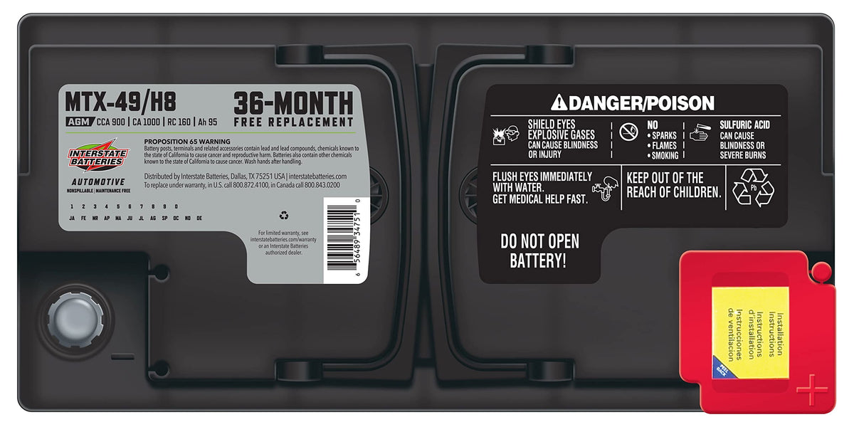 Interstate Batteries Automotive Battery 12V 95Ah (Group Size H8, 49) 900CCA SLI AGM Automobile Replacement Battery for Cars, SUV