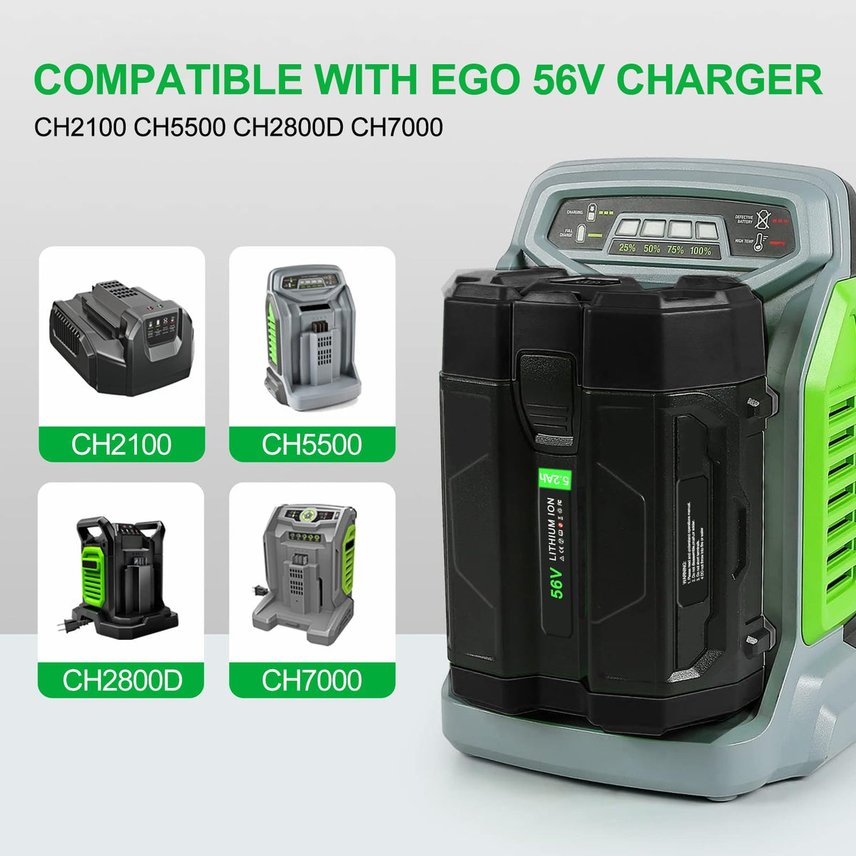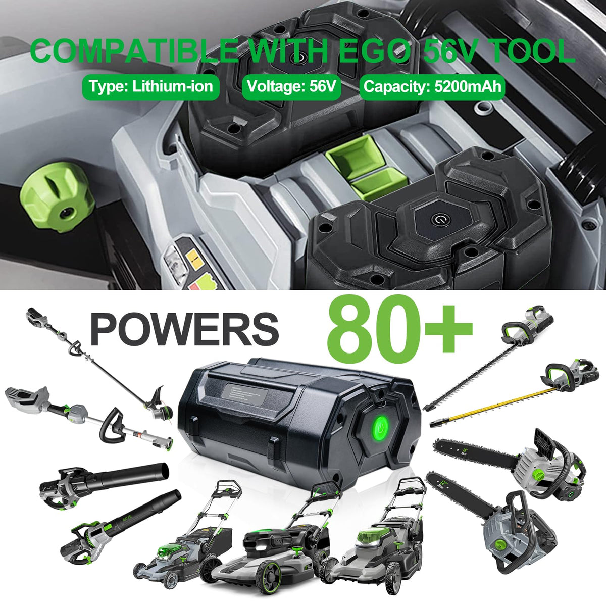 Q: Is the JGSPJ 56V 5.2Ah Lithium Battery compatible with my EGO tools?A: Yes, the JGSPJ 56V 5.2Ah Lithium Battery is 100% compatible with all EGO 56V tools and chargers, including models such as BA2800, BA4200, CS1604, and many others. Please check the compatibility list to ensure it fits your specific model.