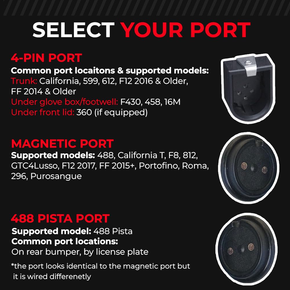 Fits Like Oem, Performs Much Better Automatically Charge And Repair Your Ferrari'S Battery, While Protecting Your Car’S Electronics. Guaranteed To Fit Your Model’S Designated Charging Port With The Included Magnetic Plug & Play Adapter For Ferrari. Common Port Location: Above Rear License Plate. *Use The Included Alligator Clamps Or 12V Cig Adapter To Charge Any Vehicle With A 12 V Battery. Supported 12V Batteries: Lithium/Lifepo4, Agm, Lead Acid, Wet, Gel, Efb, Mf & Calcium.