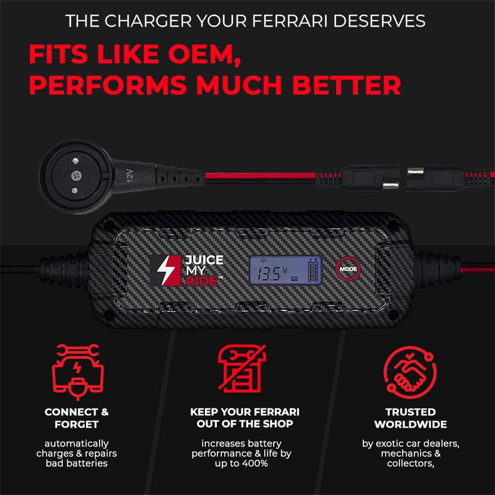 Jmr Battery Charger For Ferrari 488 F8 California T Portofino 812 Roma 296 Gtc4Lusso Ff F12 Purosangue 12Cilindri Trickle Charger Conditioner Maintainer (Magnetic Port, Add Lithium Mode)