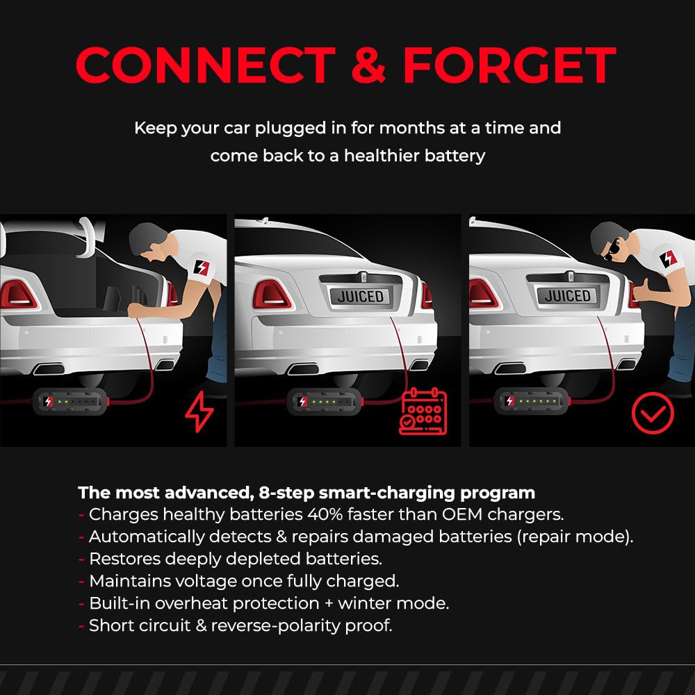 Connect & Forget Keep Your Ride Plugged In For Months At A Time And Come Back To A Healthier Battery, With The Most Advanced, 8-Step Smart-Charging Program That: