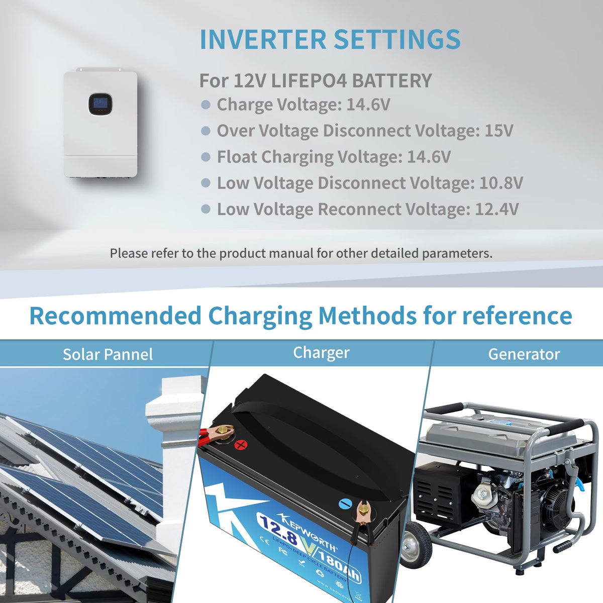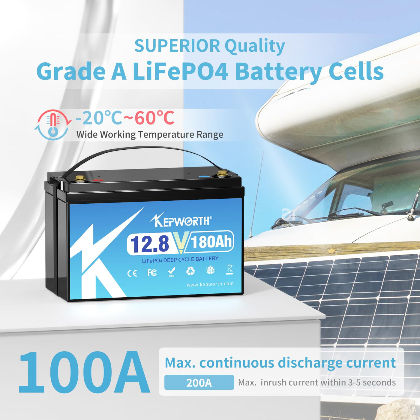 Kepworth 12.8V 180Ah Lifepo4 Battery, Rechargeable Lithium Batteries Group 31, Up To 4000+ Deep Cycles, Grade A Lithium Iron Pho