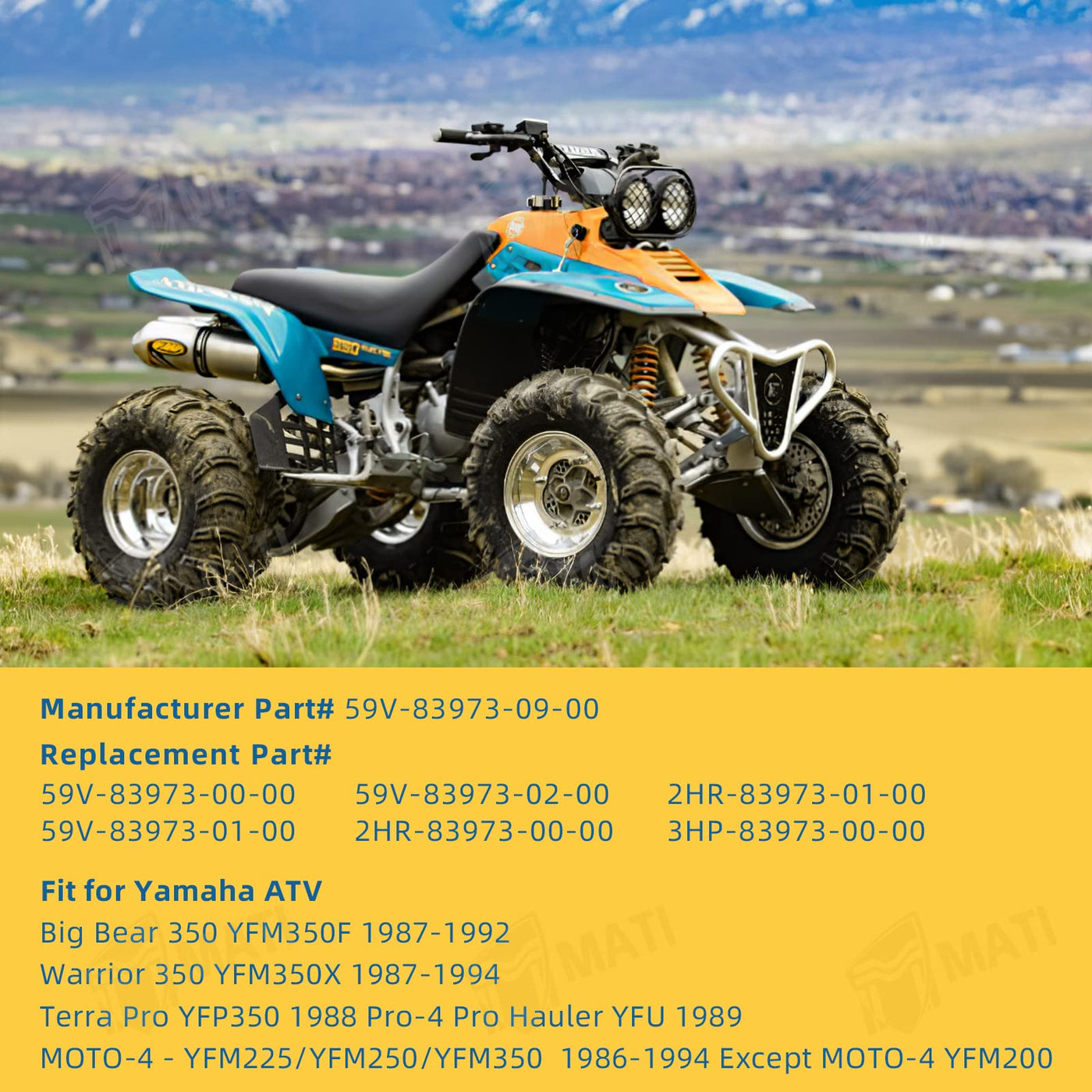 Q: What vehicles is the M MATI Left Handlebar Control compatible with?A: The M MATI Left Handlebar Control is compatible with various Yamaha models including the Big Bear 350 (1987-1992), MOTO-4 225 (1986-1988), MOTO-4 250 (1989-1991), MOTO-4 350 (1987-1990, 1992-1994), Pro-4 Pro Hauler (1989), Terra Pro (1988), and Warrior 350 (1987-1995).