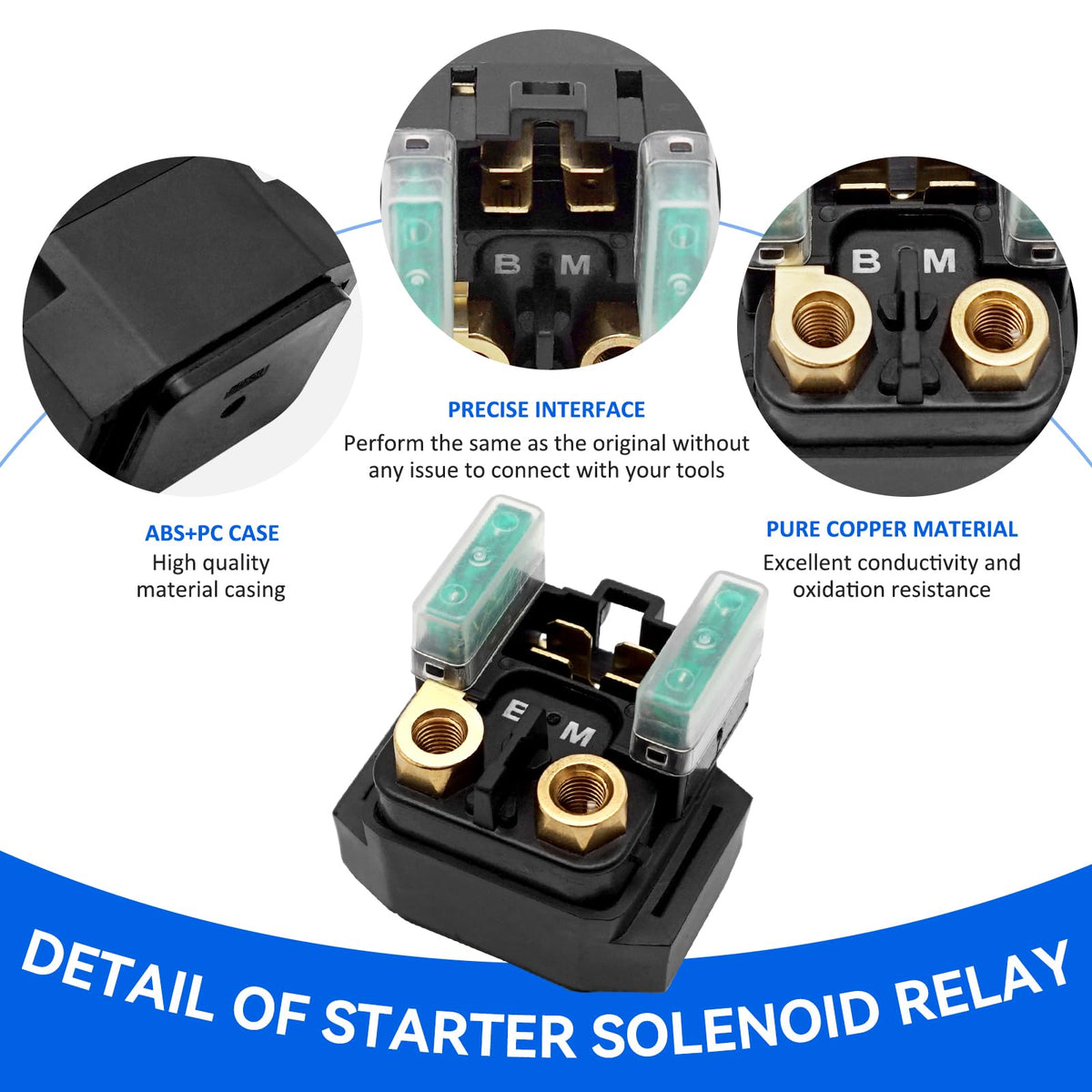 Q: How do I install the M MATI Starter Solenoid Relay?A: Installing the M MATI Starter Solenoid Relay is straightforward. First, disconnect the ATV's battery to ensure safety. Then, remove the old solenoid relay and replace it with the new one, ensuring that all connections are secure. Finally, reconnect the battery and test the starter to confirm proper functionality. If you're unsure, consult a professional mechanic for assistance.