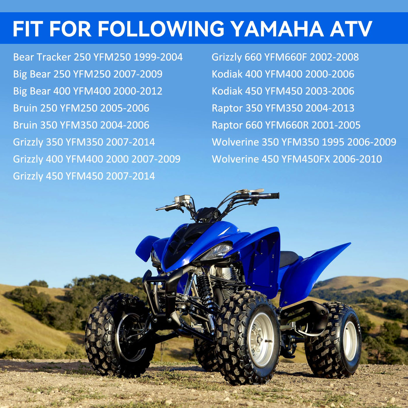 Q: What Yamaha ATV models are compatible with the M MATI Starter Solenoid Relay?A: The M MATI Starter Solenoid Relay is compatible with various Yamaha ATV models including Bear Tracker 250 (1999-2004), Big Bear 250 (2007-2009), Big Bear 400 (2000-2012), Bruin 250 (2005-2006), Bruin 350 (2004-2006), Grizzly 350 (2007-2014), Grizzly 400 (2000, 2007-2009), Grizzly 450 (2007-2014), Grizzly 660 (2002-2008), Kodiak 400 (2000-2006), Kodiak 450 (2003-2006), Raptor 350 (2004-2013), Raptor 660 (2001-2005), Wolverine 350 (1995, 2006-2009), and Wolverine 450 (2006-2010).