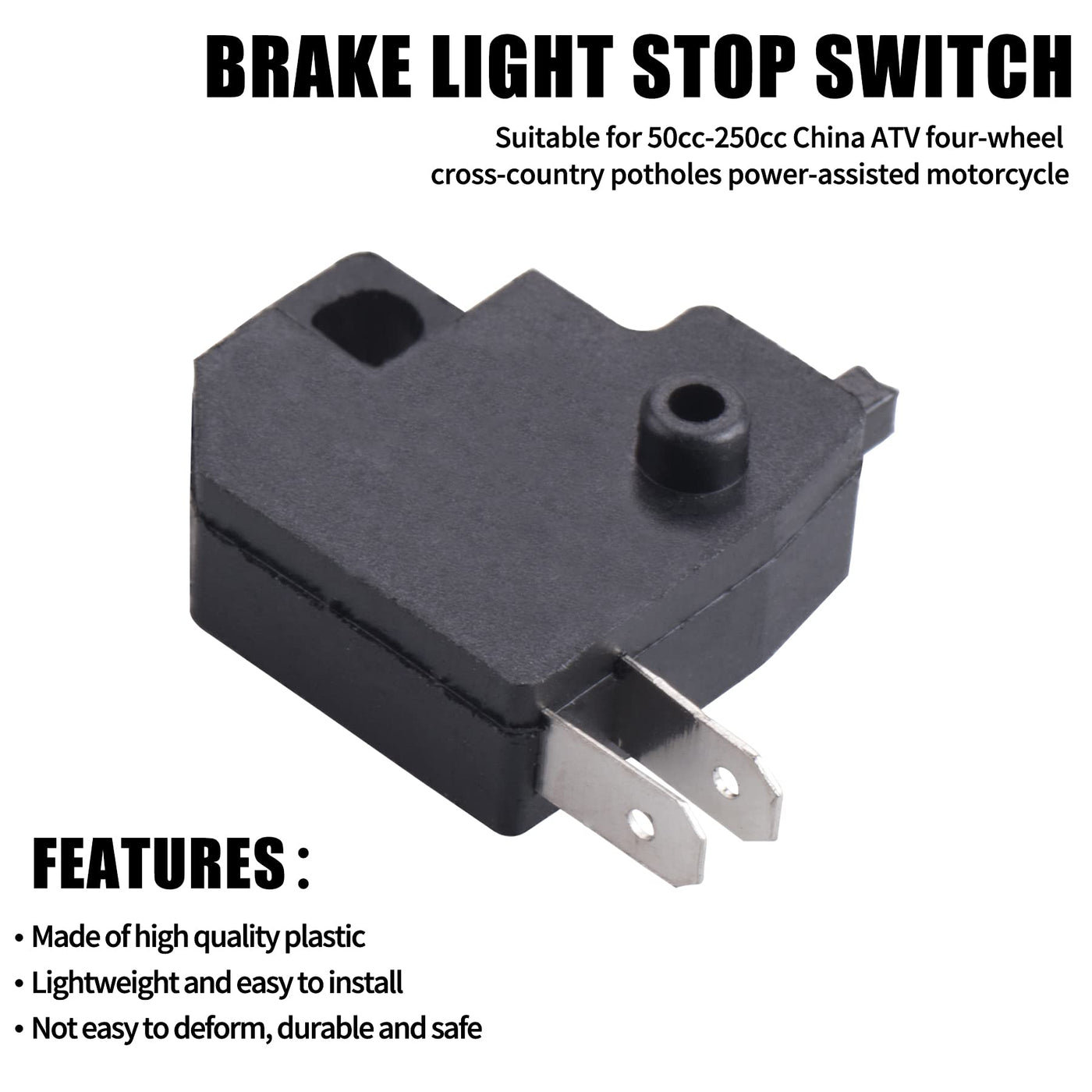 Q: Is this brake light switch compatible with my 50cc-250cc ATV or dirt bike?A: Yes, the ORAEVY Motorcycle Front Left (Right) Brake Light Stop Switch is specifically designed for 50cc-250cc Chinese ATVs, quads, dirt pit bikes, mopeds, and scooters. It is also compatible with popular brands like Yamaha, Honda, Kawasaki, and Suzuki GY6.