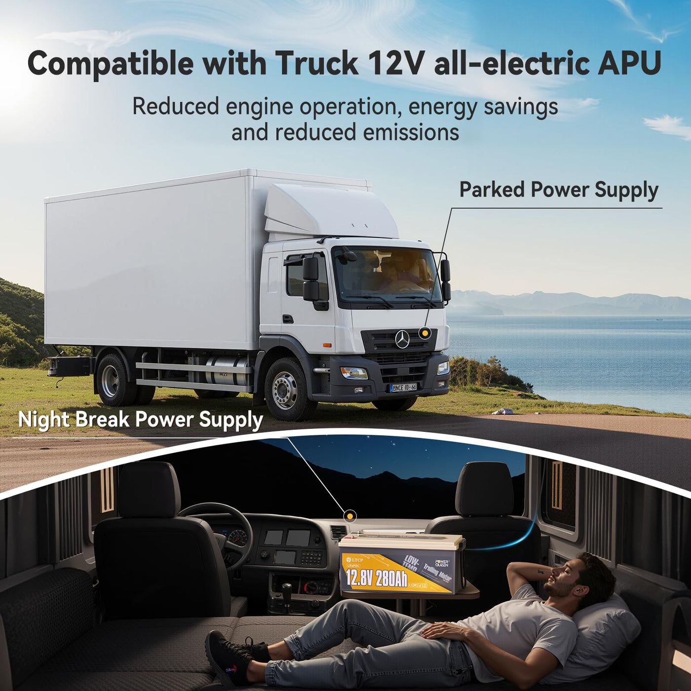 Power Queen 12V 280Ah LiFePO4 Battery, Low-Temp Protection Lithium Battery, 200A BMS, 3584Wh Energy, 4000+ Deep Cycles for Cabin, Marine, RV Solar Power System, Truck