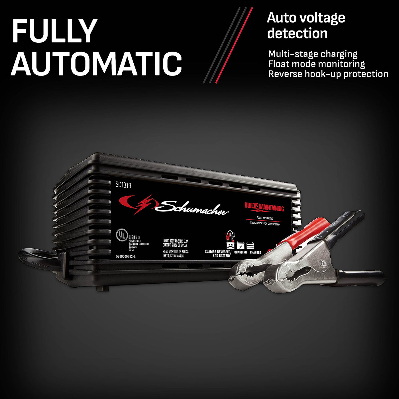 Schumacher Electric Battery Charger and Maintainer, 2-in-1, SC1319 - Fully Automatic, 1.5 Amp, 6 Volt and 12 Volt for Car, Power