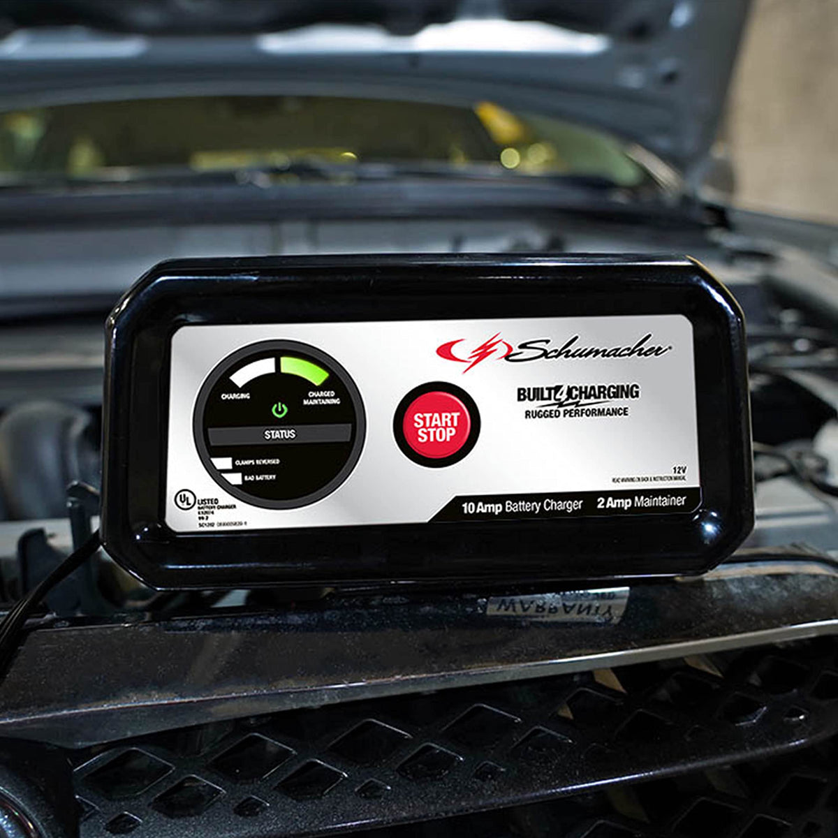 Schumacher Sc1282 Fully Automatic Battery Charger And Maintainer - 10 Amp/2 Amp 12V - For Automotive, Marine, And Power Sport Batteries, Black