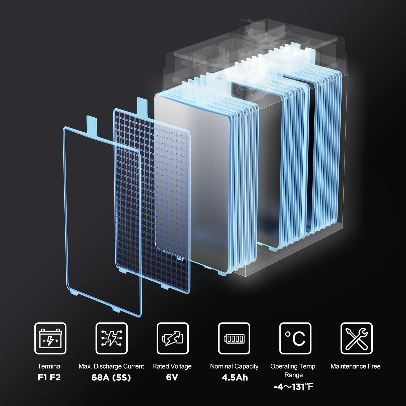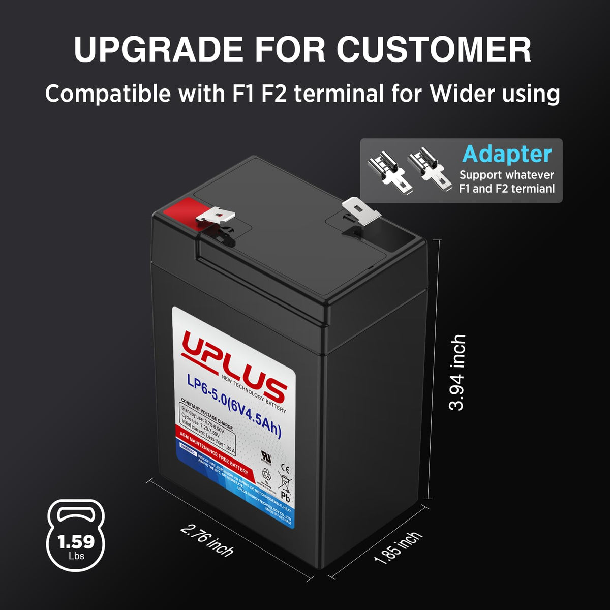 Uplus 6V 4.5Ah Rechargeable Agm Battery, Lp6-5.0 Sla Replacement Batteries For Auto Deer Feeder, Kids Power Wheels, Game Hunting
