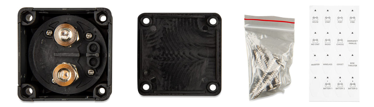 Victron Energy Battery Switch On/Off 275 Amp Is Suitable For Battery Systems Up To 48V | It Has A Unique Ergonomic And Aesthetic Knob Design | The Knob Is Removable For Isolation Or Safety Purposes | Victron Energy Battery Switch Can Be Either Surface Or Panel Mounted, Providing Flexibility During Install | Victron Energy Battery Switch Is Suitable For Use In An Engine Room