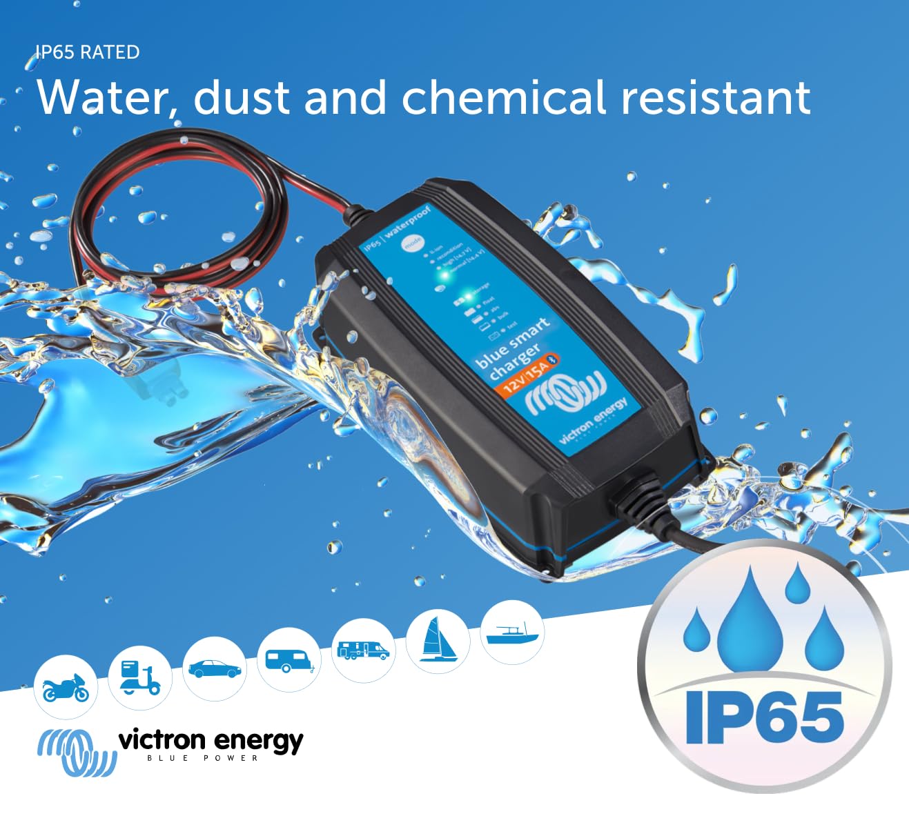 Victron Energy Blue Smart Ip65 Smart Car Battery Charger 12V 15A, Trickle Charger, Float Charger And Desulfator For Motorcycle, Atv, Rv, Lithium And Deep Cycle Batteries