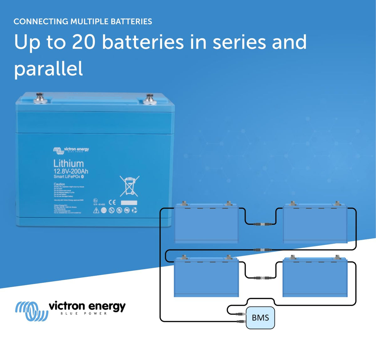 Victron Energy Lithium Smart Batteries Are Lithium Iron Phosphate (Lifepo4) Batteries And Are Available In 12.8 V Or 25.6V In Various Capacities. They Can Be Connected In Series, Parallel And Series/Parallel So That A Battery Bank Can Be Built For System Voltages Of 12 V, 24 V Or 48 V. Each Battery System Requires 1X Bms To Be Properly Wired In, Victron Energy Bms Sold Separately.