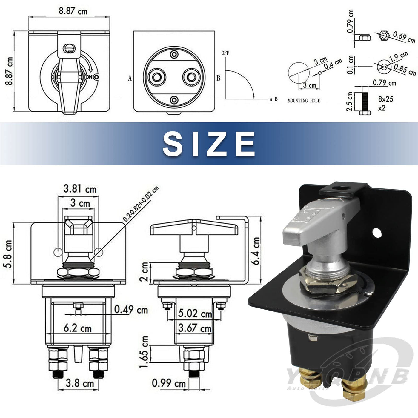 Yzqpnb Battery Disconnect Switch With Lockout Plate Fits Negative Battery Doctor Replace 20247, 500A 12V-36V Master Battery Kill Switch Fixed Handle Isolator For Car Auto Rv And Boat Waterproof