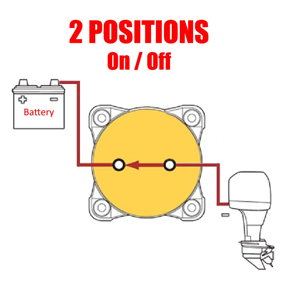 Q: How does the battery switch operate?A: This battery switch features a simple On/Off operation with 2 positions, allowing for easy control of your electrical system, eliminating any unwanted power draw when the vehicle or boat is not in use.