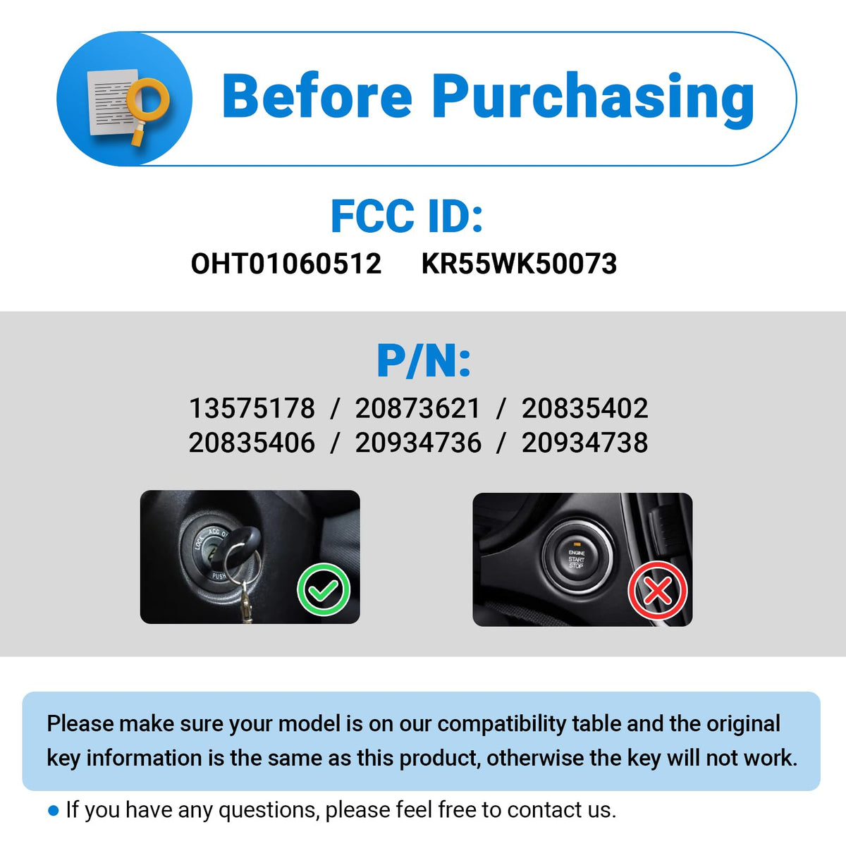 Q: Is this key fob compatible with push-to-start vehicles?A: No, this key fob is designed for vehicles with a standard ignition system and is NOT compatible with push-to-start or PEPS vehicles. Ensure your vehicle's ignition type matches before purchasing.
