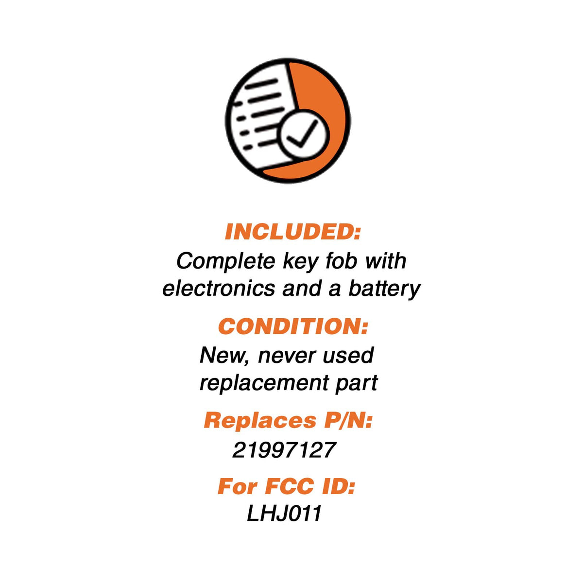 Q: Is this key fob compatible with my vehicle model?A: This key fob replaces several models including LHJ011, 10377295, 15132197, and more. Please check your vehicle's specifications to ensure compatibility before purchasing.