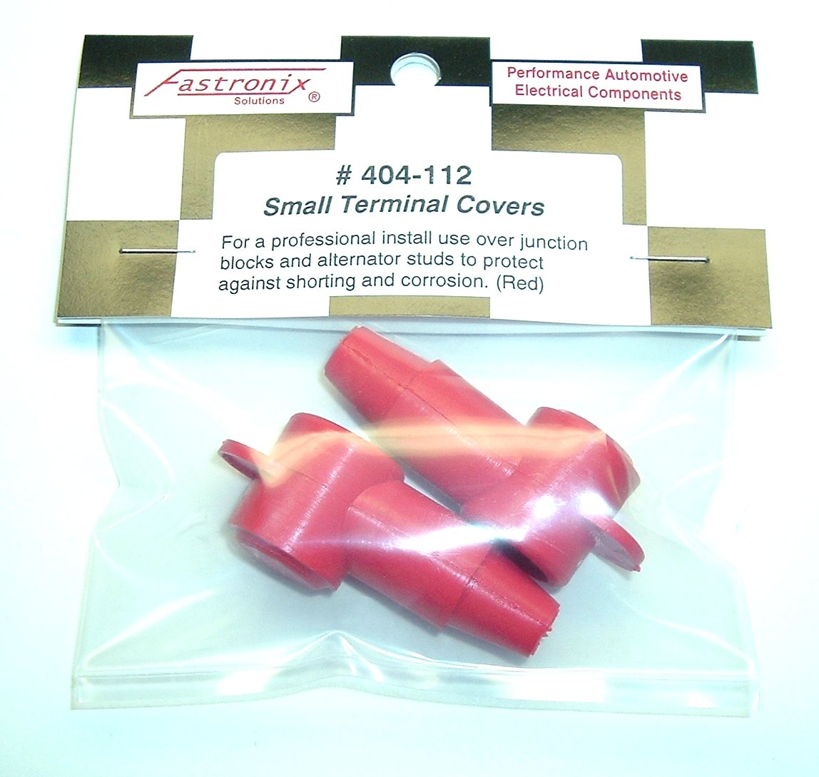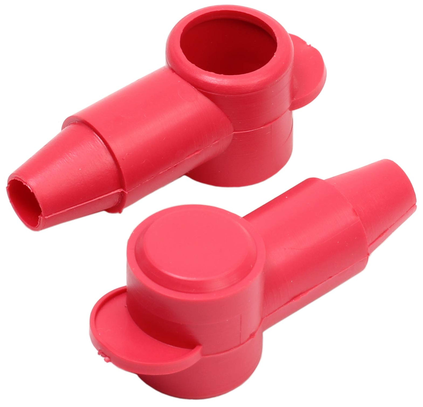 These terminal boots can be used with stud type junction blocks, or any stud terminal 5/16' and smaller to protect against accidental shorting and corrosion while improving appearance. Great for alternator, starter or solenoid studs. Available in pairs of red or black.