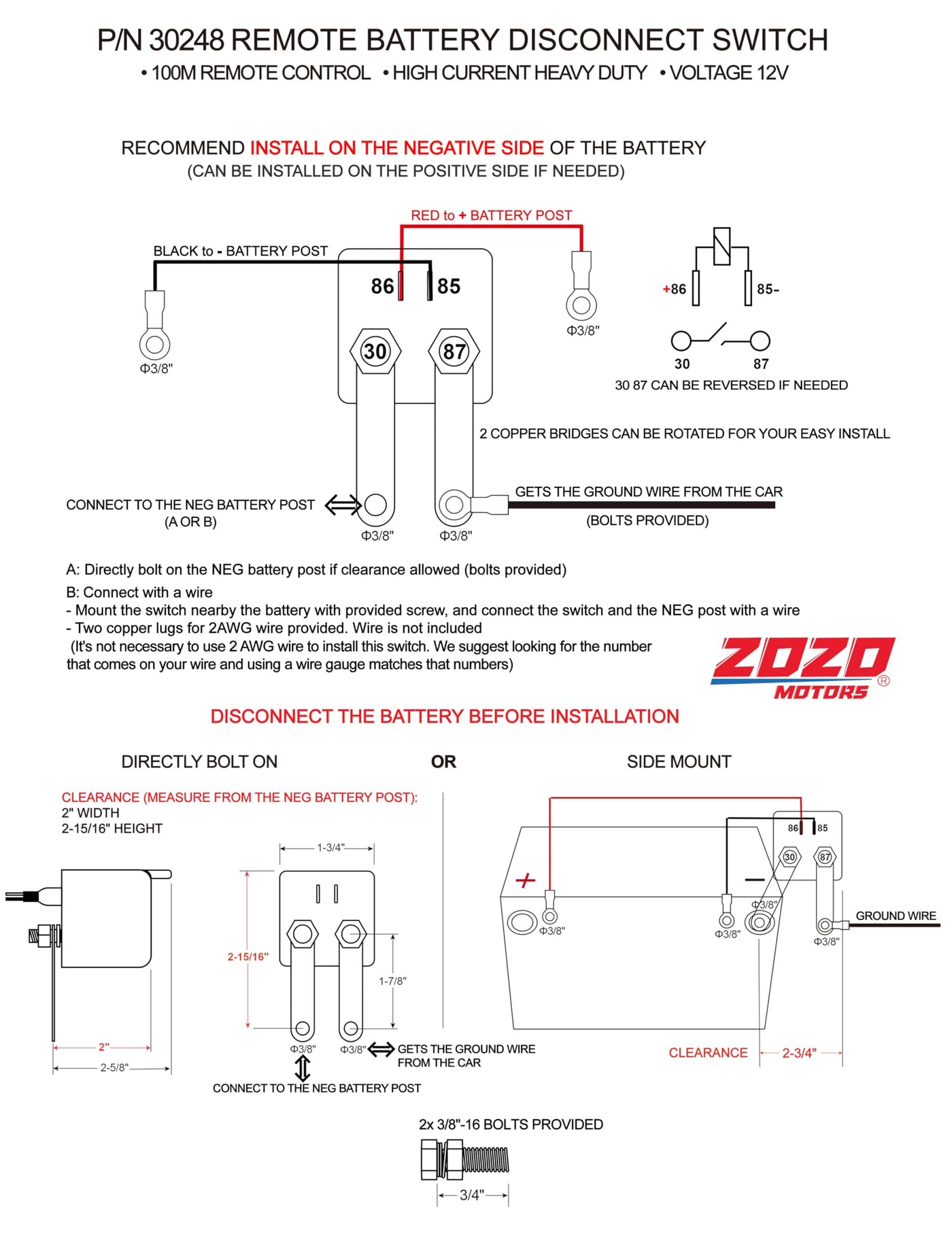 ZOZOMOTORS 3/8'' Side Post Remote Battery Disconnect Switch 12V Battery Kill Switch for Car Truck UTV ATV Marine Anti Theft Batt