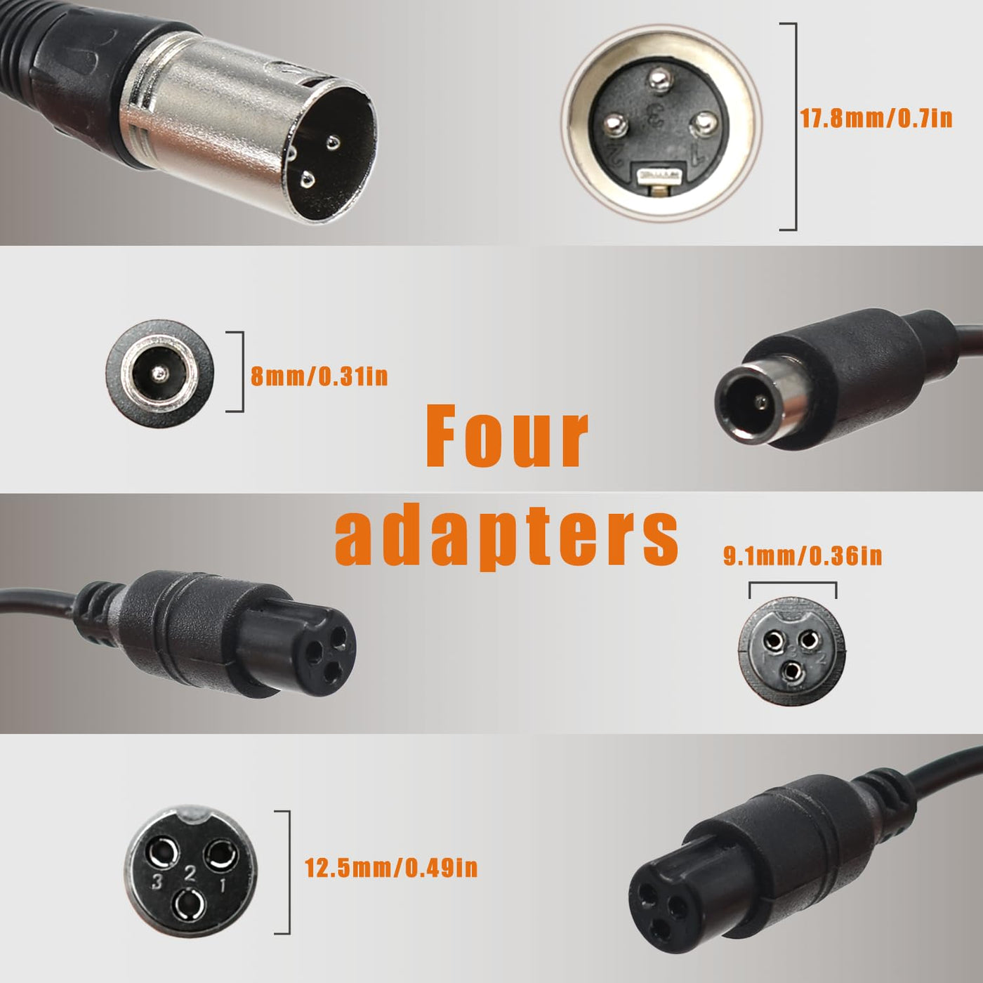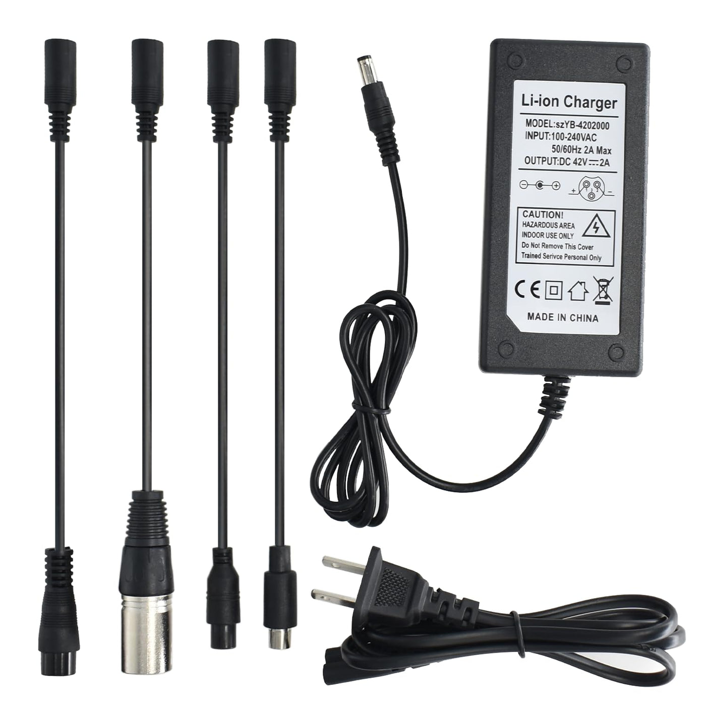 BOEEA 42V 2A Charger Universal 5 Plugs Replacement for 36V Lithium Battery, Pack DC 5.5 * 2.1 with 8mm 3 Prong /12mm 3 Prong /8m