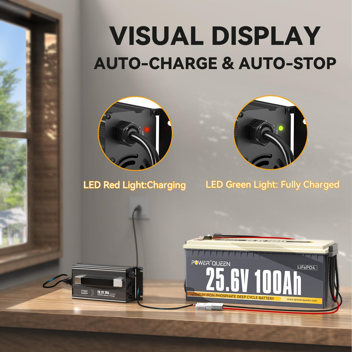 Power Queen 29.2V 20Amp Lithium Lifepo4 Battery Charger Smart Lithium Iron Phosphate Battery Maintainer Fully Automatic Recharge