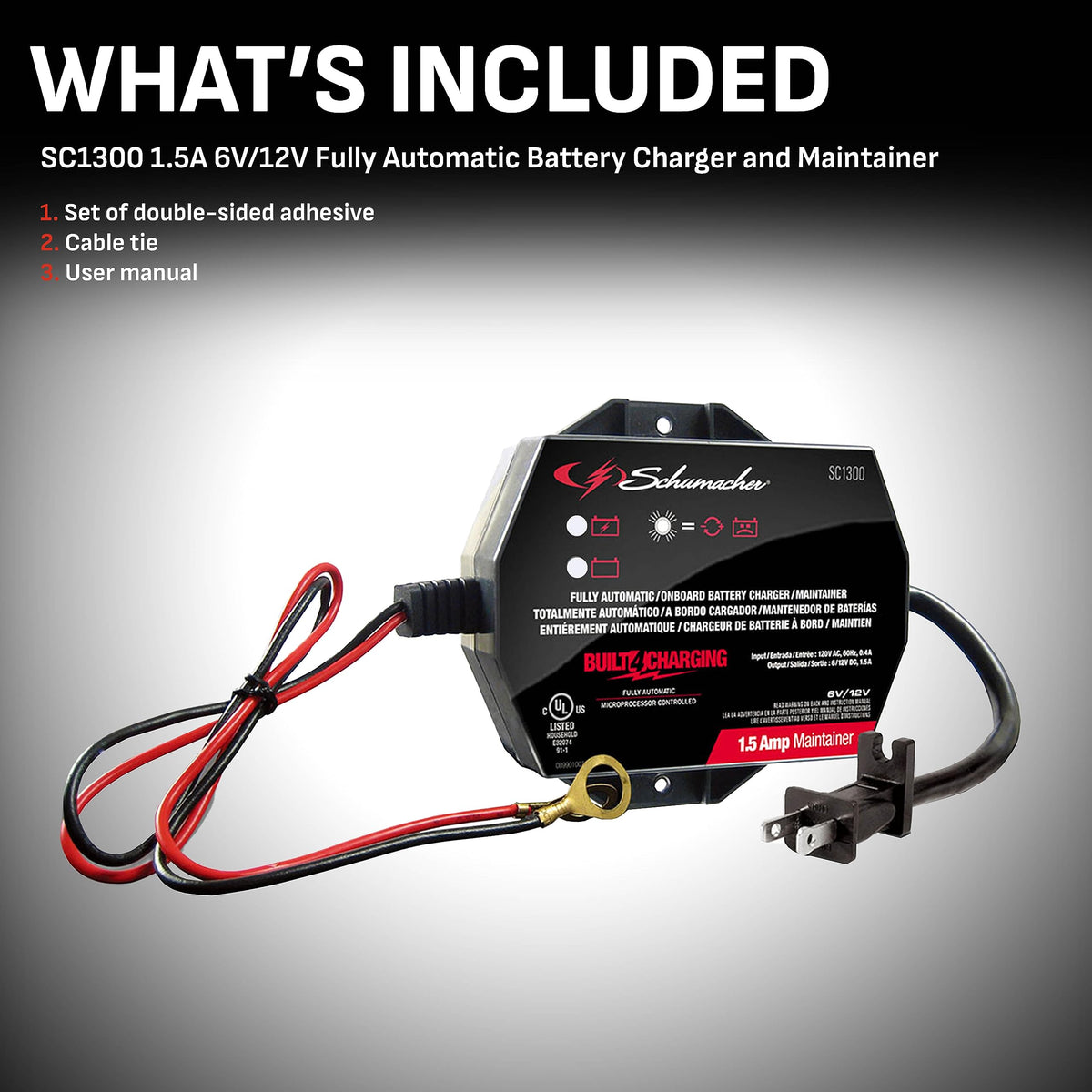 Schumacher Sc1300 Fully Automatic Direct-Mount Under-The-Hood Battery Charger/Maintainer With Battery Detection - 1.5 Amp, 6V/12