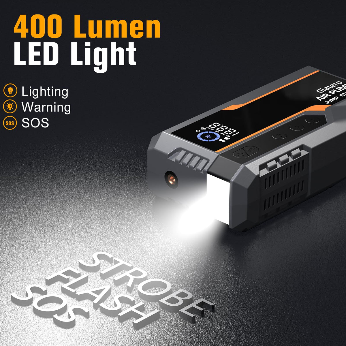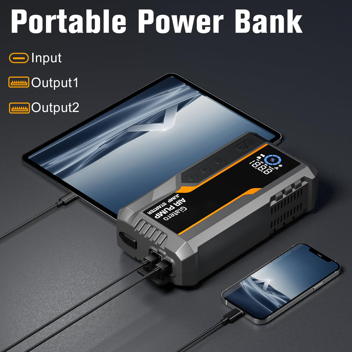Giatero Jump Starter with Air Compressor, 4000A 150PSI Car Battery Jump Starter Portable (9.0L Gas/8.0L Diesel), 12V Jump Box Battery Pack with Large LCD Display, 3 Modes Flashlight and Storage Bag