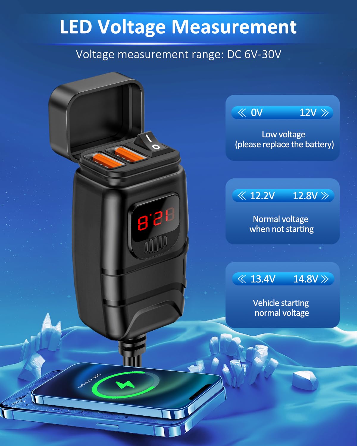 Q: What makes the RANDPOW Motorcycle Phone Charger different from standard motorcycle chargers?A: The RANDPOW Motorcycle Phone Charger features an upgraded QC3.0 fast charging system, allowing for significantly faster charging up to 24W from a single USB-A port. This technology enhances charging efficiency compared to standard chargers.