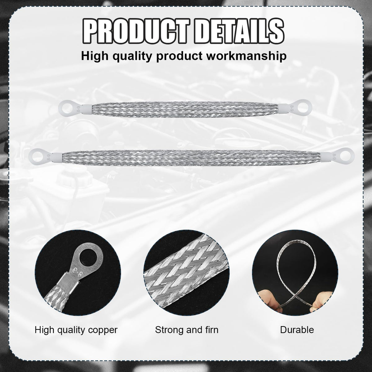 10Pcs Universal Automotive Ground Straps, 10/12 Inch Engine Ground Strap Kit Braided Copper Ground Straps Automotive Ground Strap Wire Ground Strap Connectors For Most Cars (Silver)