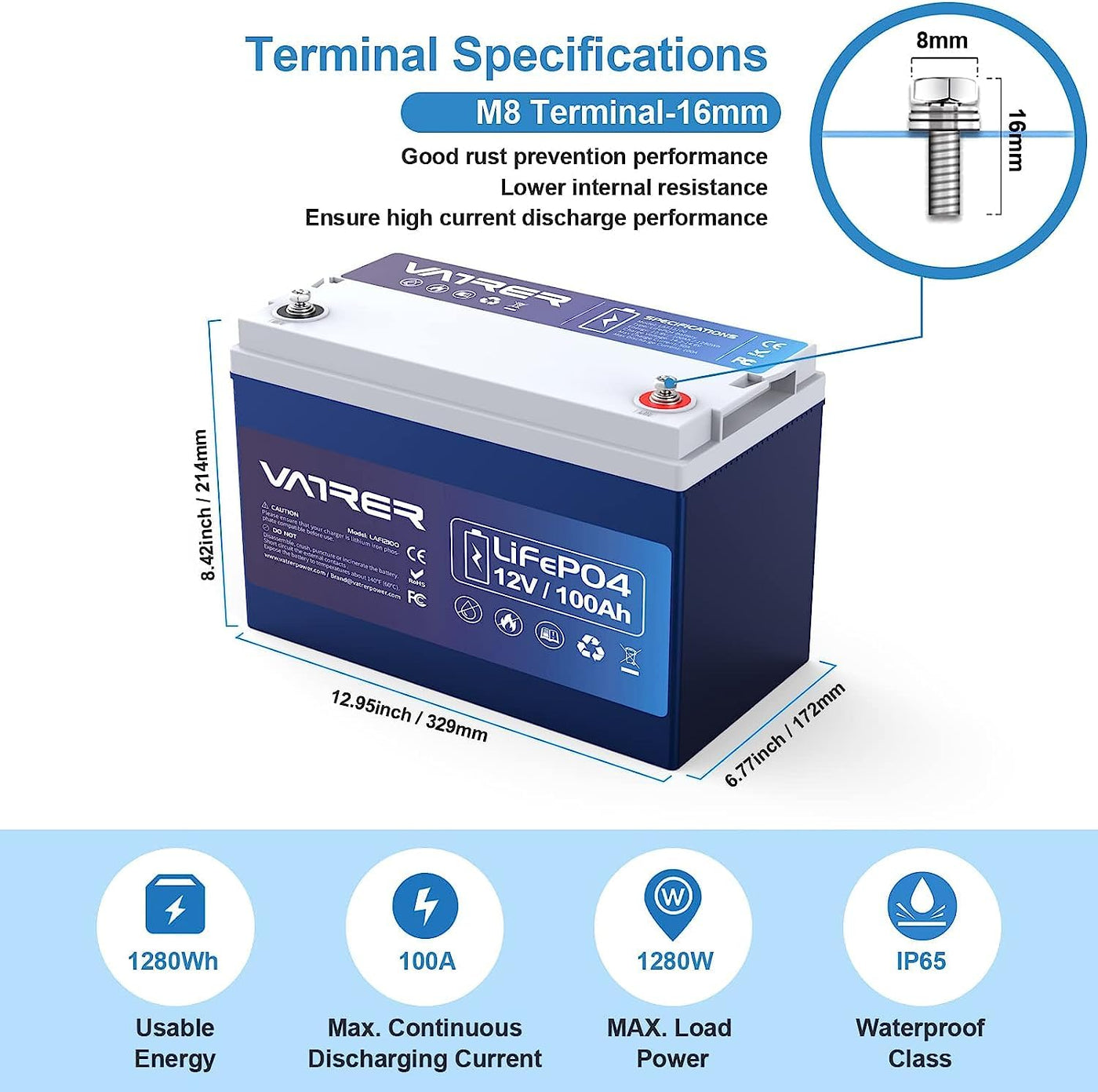 12V 100Ah Bluetooth Lifepo4 Lithium Battery With Self-Heating, Built-In 100A Bms, Supports Low Temp Charging(-4F), 5000+ Cycles,