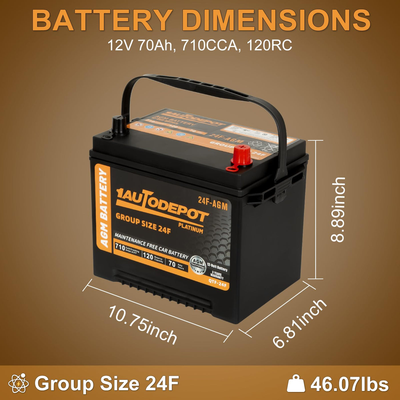 1Autodepot Bci Group 24F Car Battery, 12V 70Ah Automotive Battery Premium Maintenance Free Agm Batteries, 710Cca, 120Rc, 36 Mont