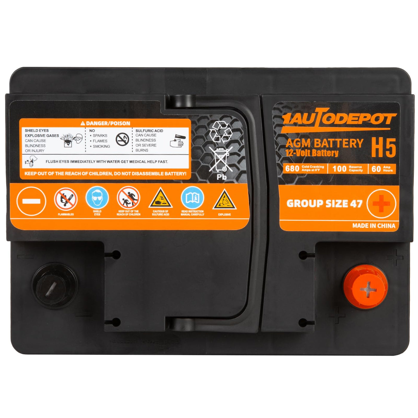 1Autodepot Bci Group 47 Car Battery, 12V 60Ah Size H5 Automotive Battery Premium Maintenance Free Agm Batteries, 680Cca, 100Rc