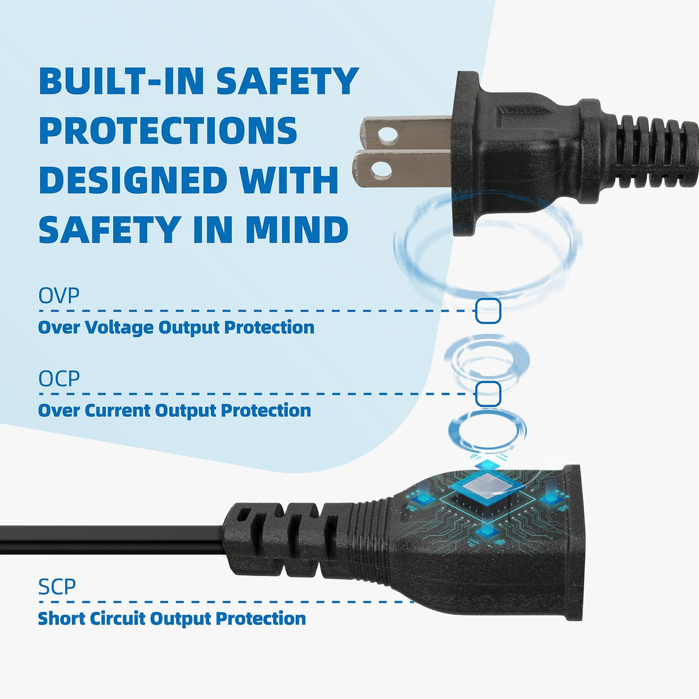 2-Prong AC Power Cord for DeWalt DXAEPS2 Professional Power Station and DXAEJ14 1400 Peak Amp Jump Starter. Conveniently Charge Devices: This AC power cord is designed to provide a reliable and efficient charging solution for your DeWalt DXAEJ14 1400 peak amp car jump starter. Compatible with DeWalt DXAEPS2 Professional 12V Power Station and DXAEJ14 1400 Peak Amp Jump Starter, this car battery charger jump starter power cord ensures seamless integration with your existing setup. Power Up with Confidence: 120V ac power cord, 60Hz 13W input, this power cord delivers consistent and stable power supply, allowing you to charge your devices with peace of mind. Whether you are not completely satisfied with this ac 120v 60hz power cord for any reason, please contact us.