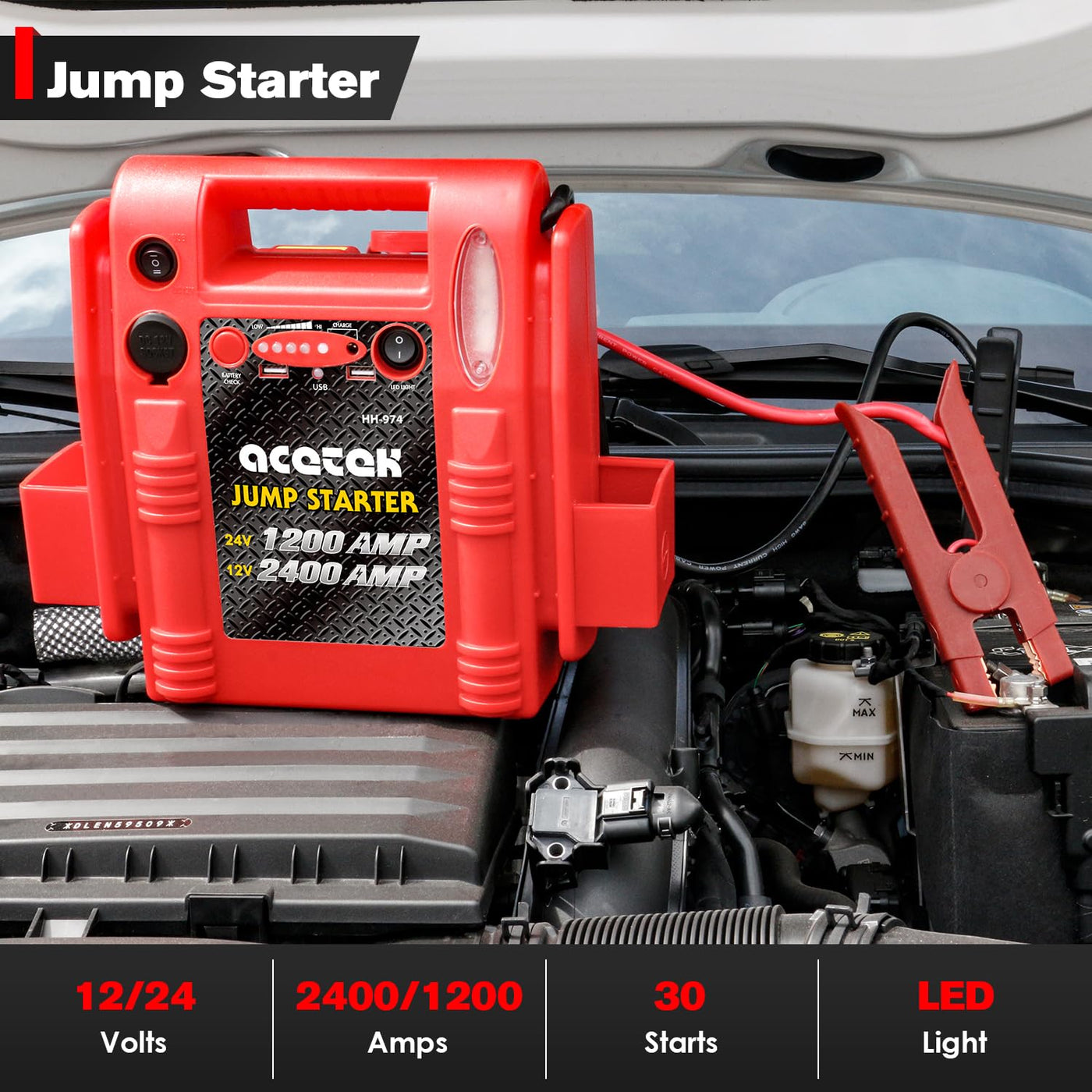 24V / 12V Jump Starter, acetek 1200/2400 Peak Amp Battery Jump Starter for Truck Car Tractor Excavator, Heavy Duty Jump Box Batt