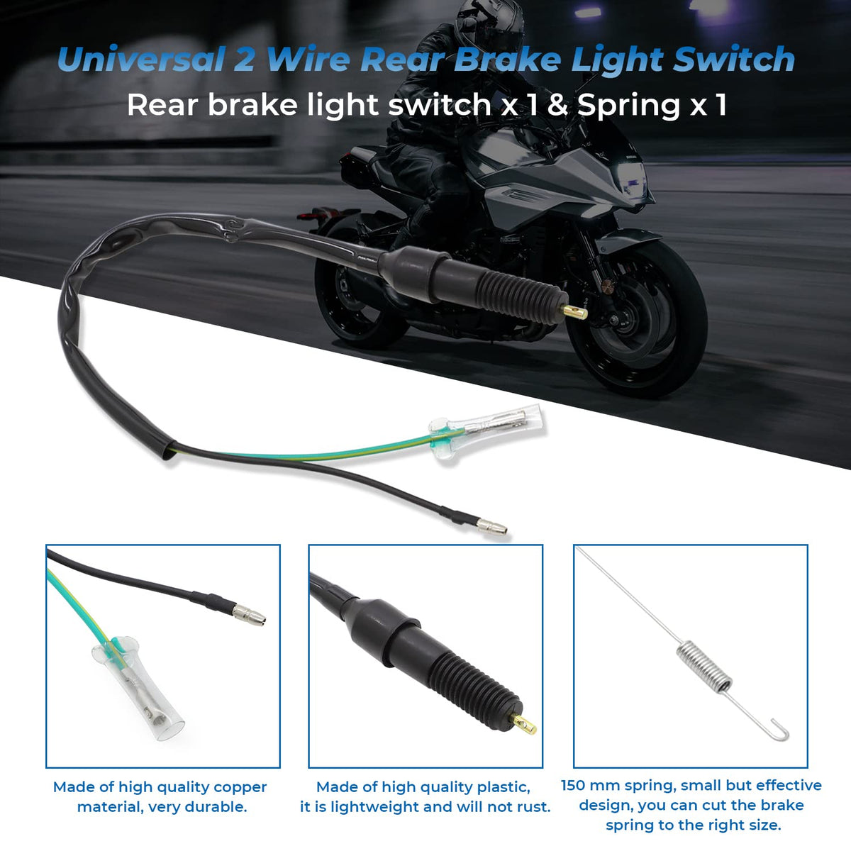 Q: Is this brake light switch compatible with my motorcycle?A: Yes, the Alpha Rider Universal 2 Wire Rear Brake Light Switch is designed to be a universal fit for most motorcycles, including popular brands such as Honda, Kawasaki, Suzuki, and Yamaha. It works with most drum brake systems that utilize a two-wire setup.
