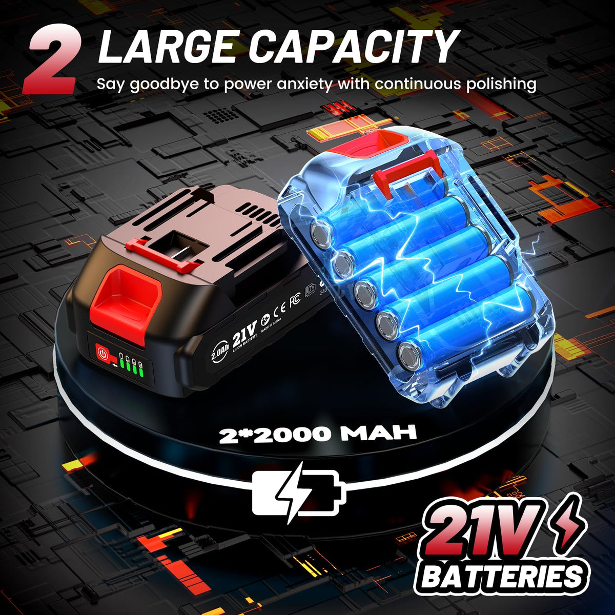 Avhrit Cordless Car Buffer Polisher Kit W/ 2X2000Mah 21V Batteries, 6 Inch Car Buffer Waxer Kit W/ 6 Variable Speed & Extra 10 P