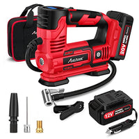 Avid Power Tire Inflator Portable Air Compressor, 20V Cordless Car Tire Pump W/Rechargeable Li-Ion Battery, 12V Car Power Adapte