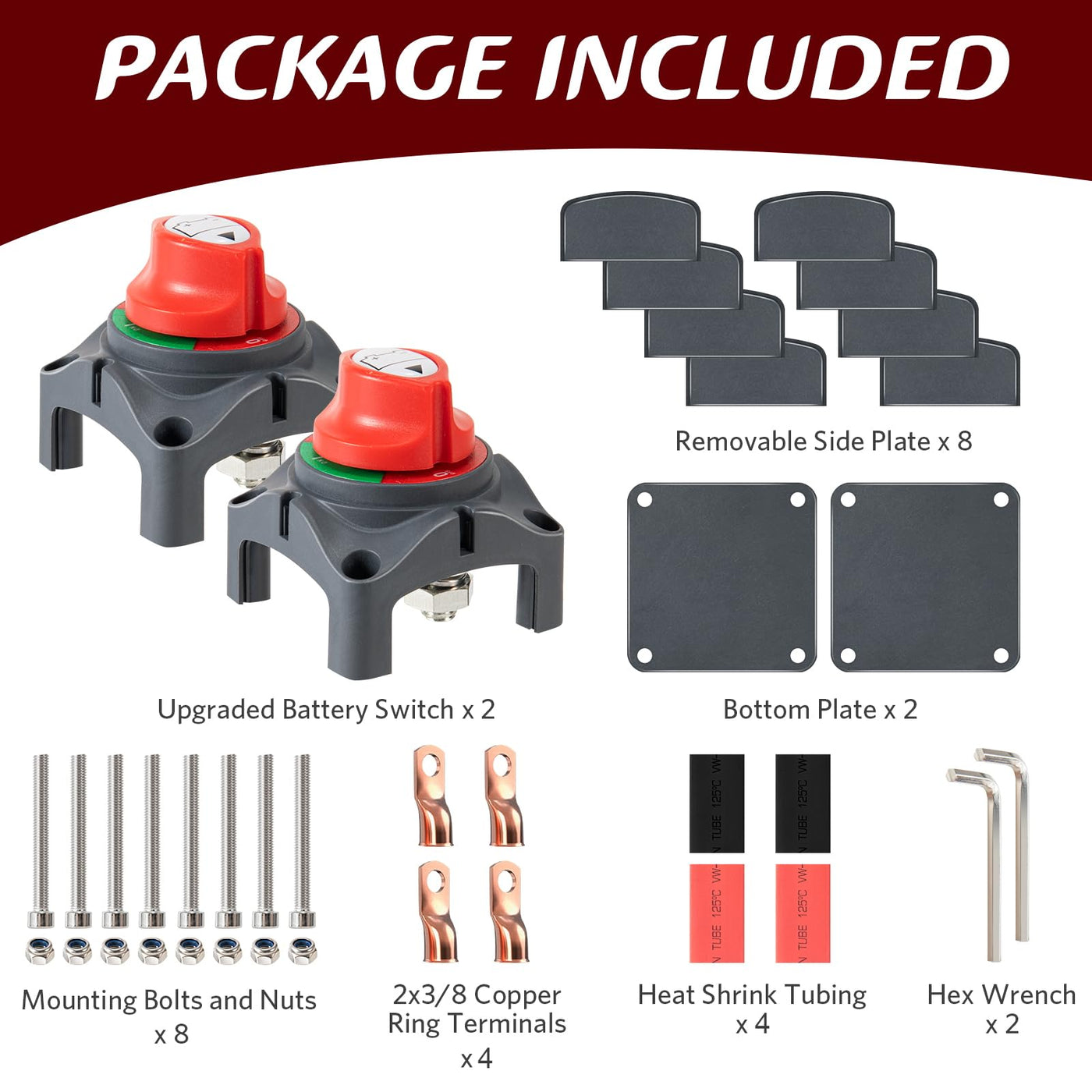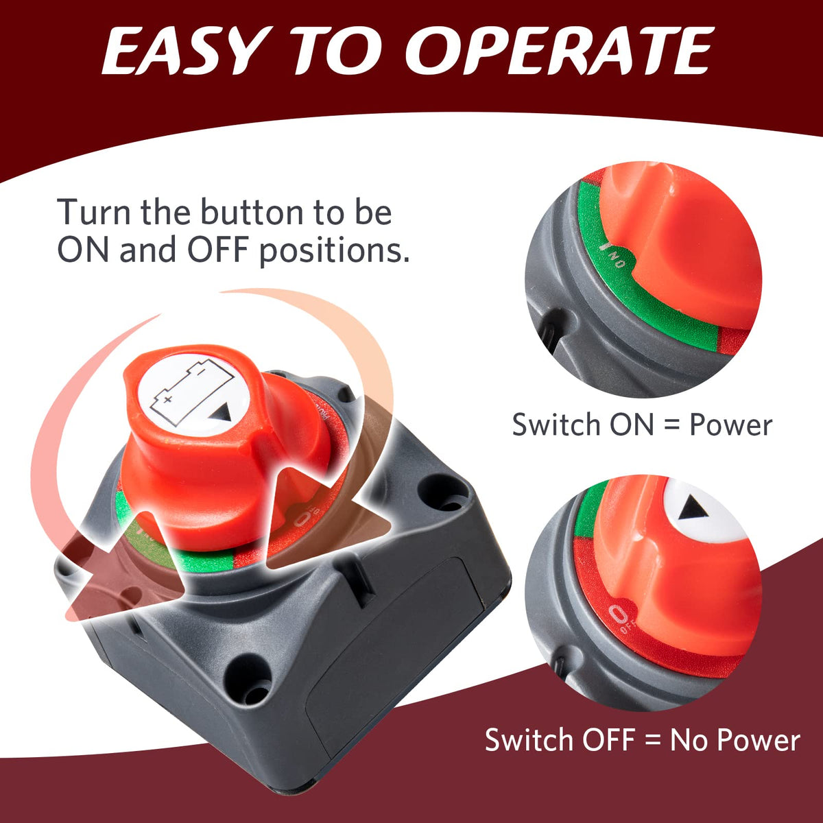 Battery Disconnect Switch, 12V-48V Battery Cut Off Switch (On/Off) For Marine, Boat, Camper, Rv, Truck, Trailer Vehicles (2 Pack), Upgraded