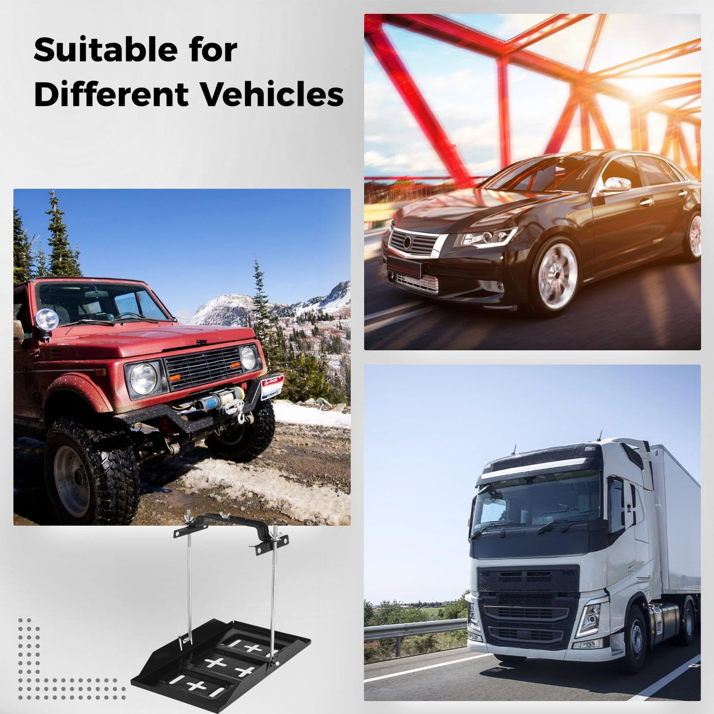 Battery Hold Down Tray Kit, Universal Battery Storage Holder, Metal Battery Tray with Adjustable Bracket Clamp, Rectangular Batt