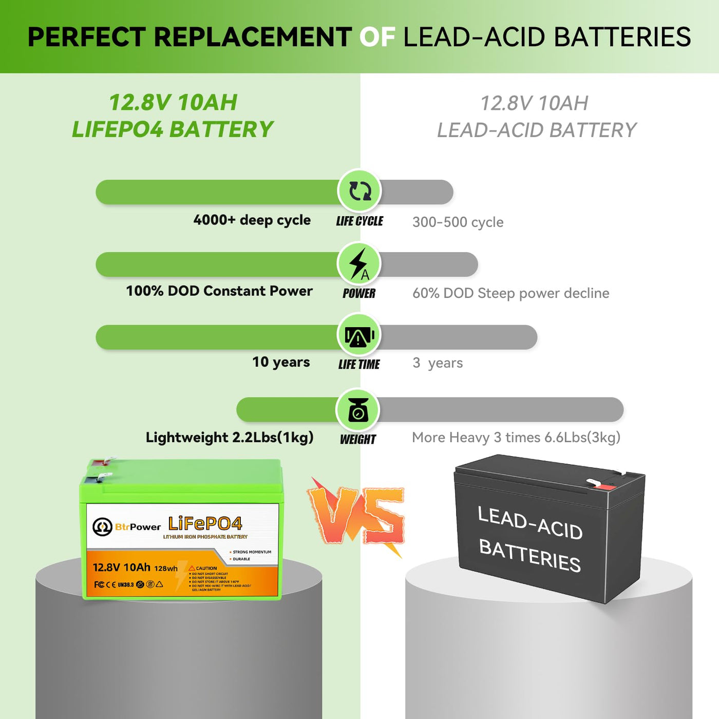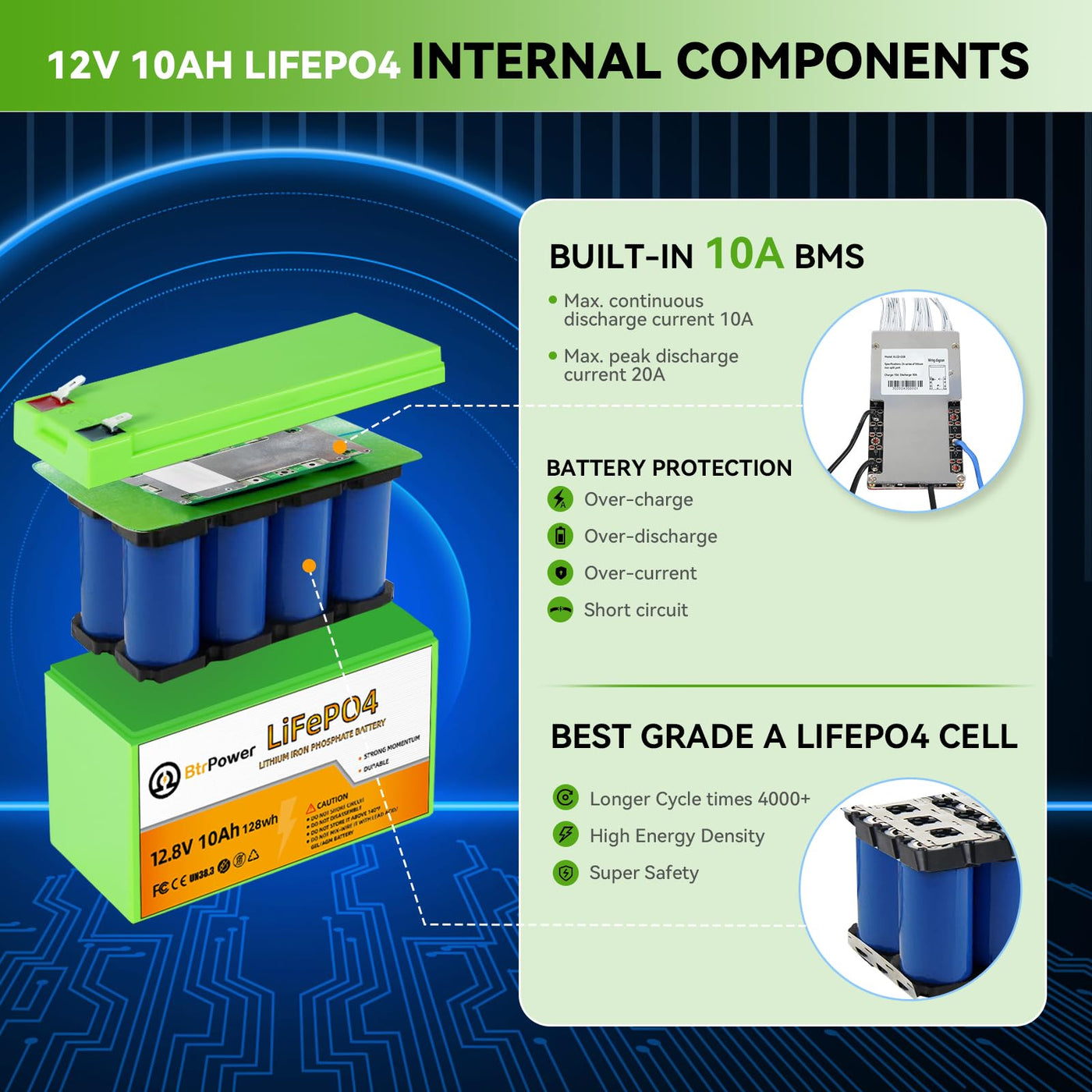 Btrpower 12V 10Ah Lifepo4 Battery,3000+ Deep Cycles Lithium Batteries,Built-In 10A Bms,Perfect For Cyberpower Ups,Fishfinder,Lig