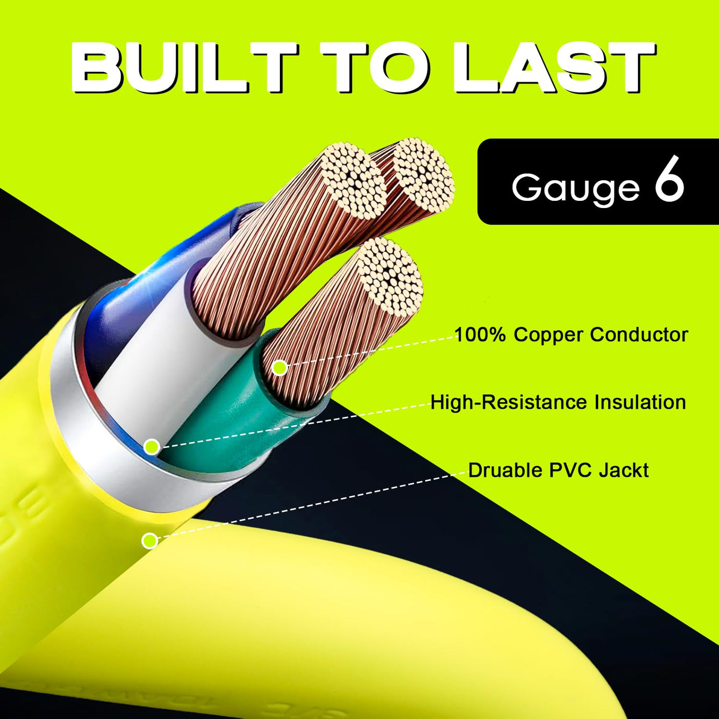 Q: How durable is the Campzlly EV Charger Adapter Cord?A: The Campzlly EV Charger Adapter Cord is constructed with 6AWG all-copper wires and a high-density PVC jacket that provides exceptional durability. It is designed to last for 5 years or longer, even under rigorous use.