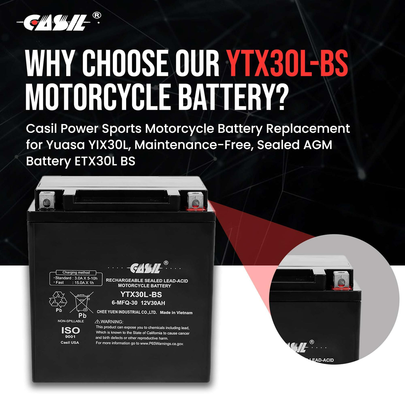 Casil Ytx30L-Bs Power Sports Replacement Yuasa Yix30L Motorcycle Battery - Maintenance Free - Sealed Agm Battery Etx30L Bs