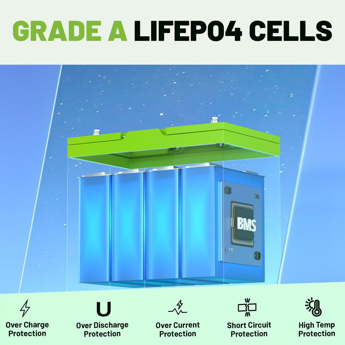 CHITOLI 12V 100Ah Group 24 LiFePO4 Battery, Max. 15000 Deep Cycle Lithium Rechargeable Battery, Built in 100A BMS for RV, Trolling Motor, Camping, Marine, Home Energy Storage